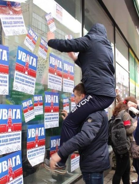 Показательно, что 14 марта трудовой коллектив украинской «дочки» Сбербанка обратился за защитой с открытым письмом к Порошенко, а буквально на следующий день, 15 марта, президент Украины подписал указ о введения санкций – в том числе и в отношении Сбербанка. В здании на улице по иронии судьбы названной Банковой (там находится администрация президента Украины) не был услышан призыв банкиров «принять срочные меры для восстановления конституционных прав клиентов и сотрудников, полноценной работы одного из ведущих коммерческих банков Украины». Пока что Сбербанк ввёл временные ограничения по банковским операциям для физических лиц, запретив снимать и переводить суммы, превышающие от 700 до 1000 евро в сутки. «Дочка» российского Сбербанка обслуживает более миллиона частных лиц и около пяти тысяч корпоративных клиентов, имеет 150 отделений в регионах. Так что «активистам» ещё муровать и муровать.