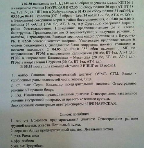 Хотя первоначальный замысел нападавших был сорван (их обнаружил военный наряд, завязалась длившаяся около 20 минут перестрелка), следует признать, что действовали они чётки и слаженно. Бандитская вылазка в Наурском районе стала неожиданной, так как левобережье Терека традиционно считается в республике наиболее спокойным районом. Национальный антитеррористический комитет объявил о ликвидации нападавших, их личности уже установлены. Как сообщил Рамзан Кадыров, двое являются уроженцами Ростовской области, один из Волгоградской области, трое – уроженцы Чечни. Двум боевикам удалось скрыться, на их поиски брошены значительные силы.