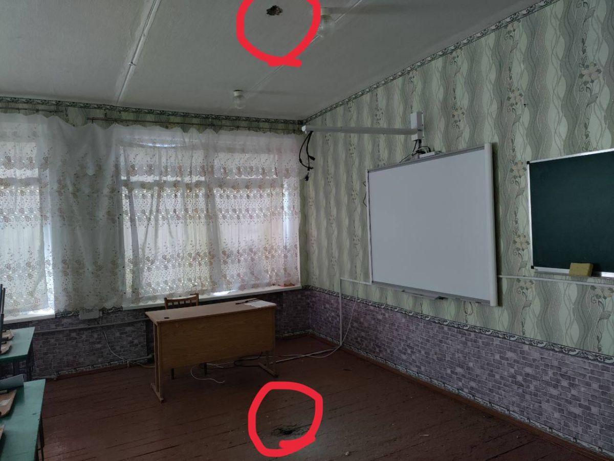 Один из сброшенных снарядов упал на прилегающей к школе территории, второй пробил крышу здания и пол в учебном классе.