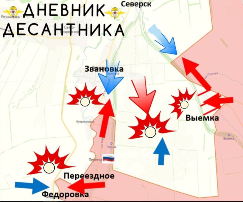 Есть продвижение в направлении южных окраин СЕВЕРСКА. На западной окраине ВЫЕМКИ форсировали речку Сухая Плотва. Районы ЗВАНОВКИ и ВЫЕМКИ густо пересечены многочисленными лесополосами, которые буквально нашпигованы укрепами ВСУ. Постепенно «перепахиваем» эти лесополосы ликвидируя опорник за опорником. Продвигаемся к СЕВЕРСКУ с южного охвата.
