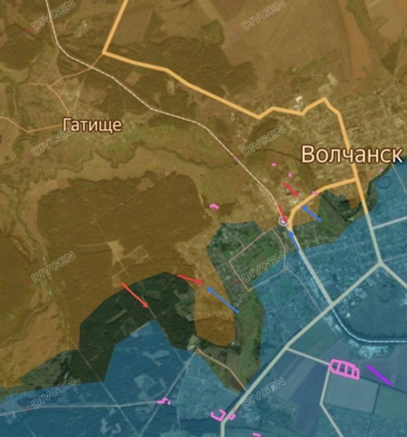 Подразделения ГрВ «Север» продолжают наступление на левом берегу р. Волчья в юго-западной части ВОЛЧАНСКА и лесах западнее города к СИНЕЛЬНИКОВО, – пишет Телеграм-канал Военкор Котенок.
