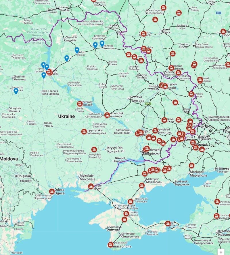 Судя по всему, поражаются узлы и ветки, ведущие на северо-восток – в сторону Сумской области (они отмечены синим).