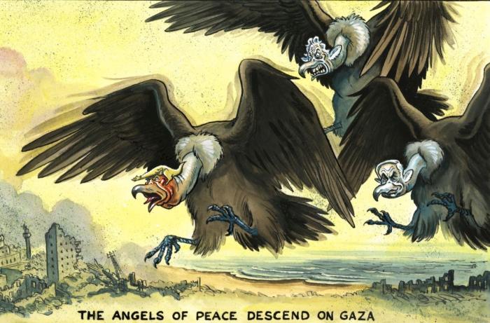«Израиль, – указывает Марсалья, – захватит новые земли, дома и имущество, продолжая свою колонизацию, сгоняя всё больше жителей Газы в море. Если внимательно посмотреть на карту, то можно увидеть, что жёлтая линия впервые изолирует сектор Газа от египетской границы, закрывая контрольно-пропускной пункт Рафах и официально превращая его в палестинский анклав внутри Израиля. Таким образом, Pax Americana превращает сектор Газа в ещё одну территорию, контролируемую и полностью окружённую израильскими колонизаторами».