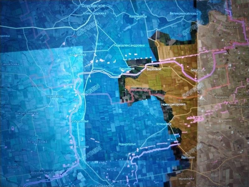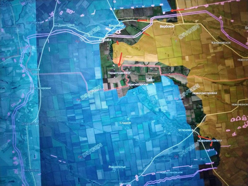 Северо-западнее НОВОГРИГОРОВКИ ВС РФ обошли район КРАСНОГОРСКОГО с позициями, которые противник успел подготовить, форсировали р. Янчур севернее ППЕРШОТРАВНЕВОГО и заняли северную часть села на левом берегу. До трассы –7,5 км полей/посадок, через которые открывается выход во фланг/тыл противнику в ДАНИЛОВКЕ, ВИШНЁВОМ, ЕГОРОВКЕ, севернее, и ГУЛЯЙПОЛЮ и УСПЕНОВКЕ южнее.