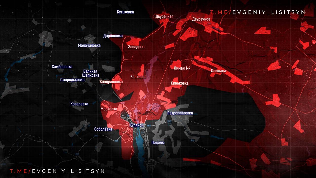 Наши бойцы зачистили территорию у Комбикормового завода. Противник безуспешно пытался шесть раз деблокировать гарнизон. Бои идут в ПЕТРОПАВЛОКЕ, КУРИЛОВКЕ и КУПЯНСКЕ-УЗЛОВОМ. На северном плацдарме у ХАТНЕГО заняты новые лесополосы.