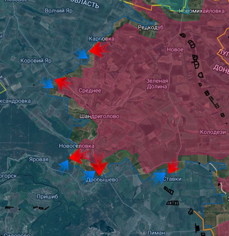 Наши войска продолжают развивать наступление в направлении КОРОВЬЕГО ЯРА от КАРПОВКИ и СРЕДНЕГО, пишет Телеграм-канал Дневник Десантника.