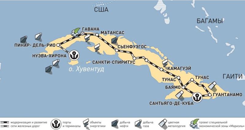 В январе 2025 г. проект АО «Зарубежнефти» на месторождении Бока-де-Харуко на северо-западе Кубы перешел из опытно-промышленных работ на стадию промышленного использования. В конце июня с. г. Москва и Гавана официально объявили о формировании промышленно-логистического центра на базе особой экономической зоны порт Мариэль около Гаваны. Здесь уже расположено около 20 предприятий и офисов стран ЕАЭС по производству и ремонту транспортного и энергооборудования, в сфере природосберегающих технологий, автосборочные, рыбоперерабатывающие объекты и др. В основном это предприятия РФ (80%) и Белоруссии (20%). В ближайшие годы число таких предприятий, включая совместные с Кубой (создаваемые с 2025 года), планируется увеличить вдвое.