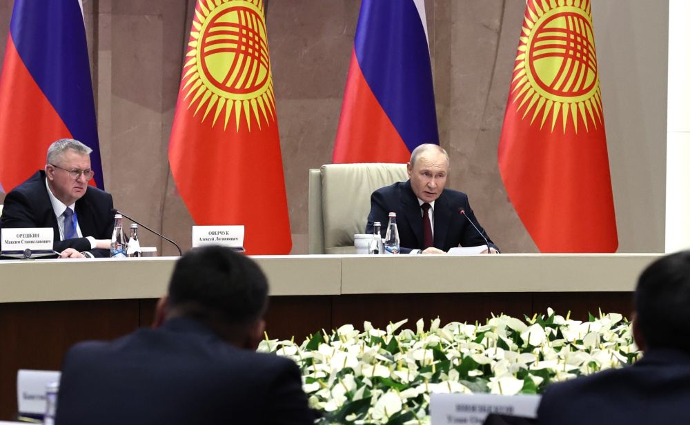 В правительственном комплексе «Ынтымак Ордо» прошли церемония официальной встречи Владимира Путина Президентом Киргизской Республики Садыром Жапаровым и российско-киргизские переговоры. По их окончании лидеры подписали Совместное заявление об углублении отношений союзничества и стратегического партнёрства. В присутствии президентов состоялся обмен другими документами, подписанными в ходе госвизита Владимира Путина в Киргизию. Главы государств сделали заявления для представителей прессы.
