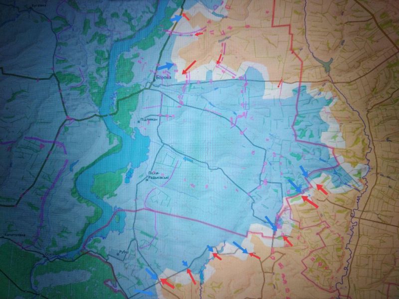 В определённый момент противник делал ставку на логистику плацдарма в районе КУПЯНСКА на левом берегу р. Оскол через БОРОВУЮ по левобережью и пытался выбить наши подразделения из ЗАГРЫЗОВО, КРУГЛЯКОВКИ и КОЛЕСНИКОВКИ.