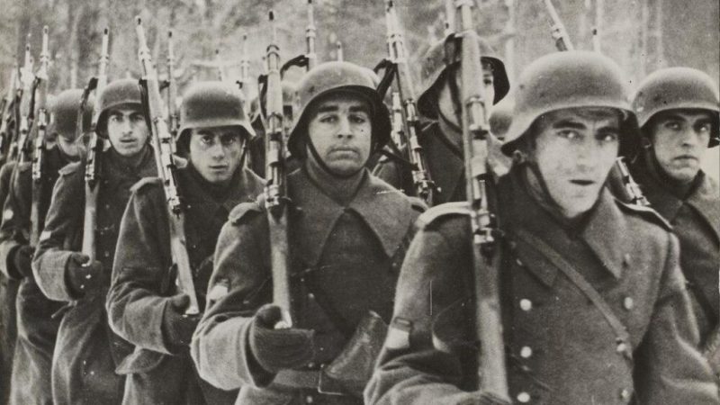 …Когда в 1941 году вместе с немецкими грабителями и убийцами в Россию ворвались их соотечественники. Это были солдаты División Azul – «Голубой дивизии», присланной Франко на помощь Гитлеру.