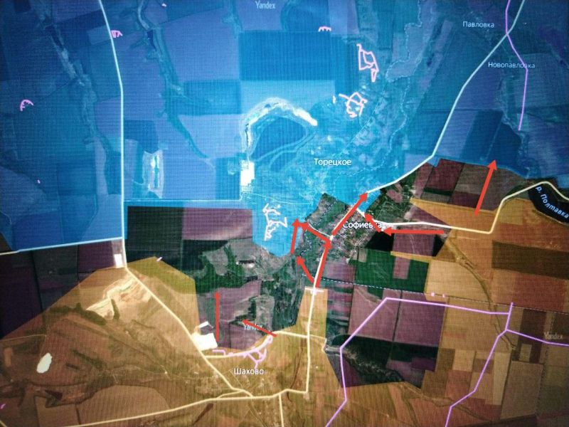Подразделения ГрВ «Центр» за последние дни, продолжая решать задачу по ликвидации окружённой группировки противника в районе Красноармейско-Димитровской агломерации (фактически уже только Димитрова), значительно продвинулись в районе ГРИШИНО и взяли почти полностью под свой контроль находящуюся в 12 км от Дружковки АРТЁМОВКУ (Софиевку), добивая очаг сопротивления ВСУ на её северной окраине, а также взяли южную часть ТОРЕЦКОГО и продвинулись к НОВОПАВЛОВКЕ.