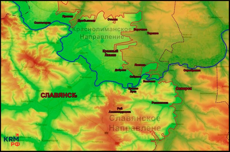 На данный момент Краснолиманское и Славянское направления (бывшее Северское) фактически разделены естественным рубежом – рекой Северский Донец. Всё, что находится на правом берегу, относится к Славянскому направлению, всё, что на левом – к Краснолиманскому. Это принципиально важно, поскольку географически разница между ними колоссальная, пишет Телеграм-канал KRM РФ.