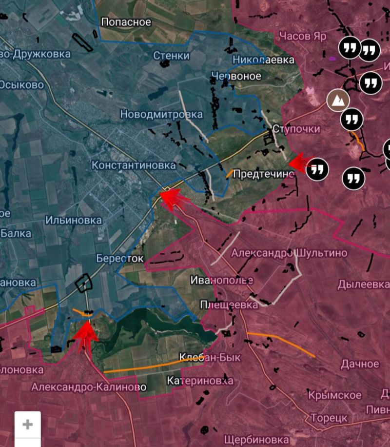 Всё ПРЕДТЕЧИНО ушло в серую зону, территория восточнее, где урочище ОСЬКОВО, под нашим контролем.