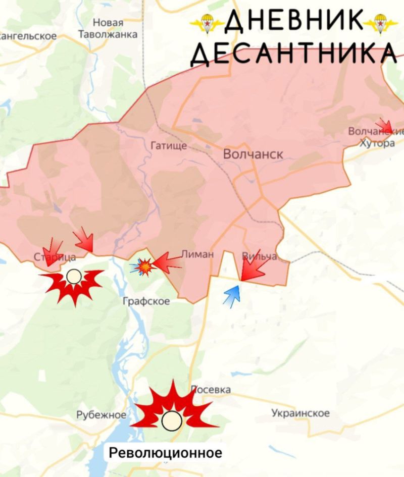 Южнее ВОЛЧАНСКА продолжаются ожесточённые бои, пишет Телеграм-канал Дневник Десантника.