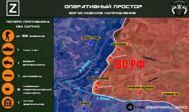 На БОГУСЛАВСКОМ НАПРАВЛЕНИИ ВС РФ продолжают наступление западнее ранее освобождённых населённых пунктов БОГУСЛАВКА и НОВОПЛАТОНОВКА.