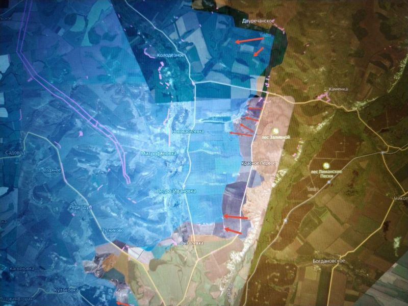 Основное движение развивалось на запад вдоль северного берега водохранилища. Российские подразделения методично зачищали лесные массивы, занимая новые опорные позиции, в то время как украинские формирования были вынуждены отходить, не выдерживая давления и угрозы флангового обхода. Отход ВСУ носит не организованный, а вынужденный характер – с потерей ранее подготовленных позиций.