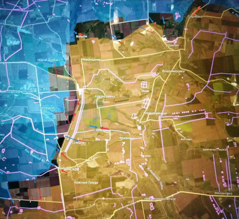 ВС РФ продвигаются по дороге на ПРИВОЛЬЕ, выравнивают линию НЕЛЕПОВСКОЕ – ПЕТРОВСКОЕ, закрывая карманы у ВАСЮКОВКИ. Расширен контроль севернее ФЁДОРОВКИ и на высотах у РЕЗНИКОВКИ. Есть успехи у ОЗЁРНОГО, продолжаются бои за ЗАКОТНОЕ.