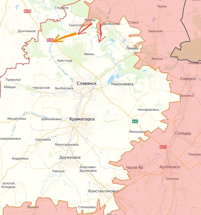 Так, южнее Святогорска бойцам армии России, предположительно, удалось продвинуться вдоль берега Северского Донца, заняв отель «Времена года» и турбазу «Терем», а севернее – идут бои в Оздоровительном центре Перлина, который был превращен украинцами в важный опорный пункт. Российские военные, по некоторым данным, выбили ВСУ из лесных массивов между населённым пунктом СОСНОВОЕ и оздоровительным центром. Освобождение Святогорска даст армии России опору для продвижения дальше – на запад, сначала к берегам Северского Донца, а в случае форсирования его и до трассы ИЗЮМ – СЛАВЯНСК, одной из двух артерий снабжения славянского гарнизона ВСУшников. В июне 2022 года ВС РФ уже освобождали Святогорск, но были вскоре вынуждены отойти из-за постоянных ударов ВСУ с территории древней лавры.