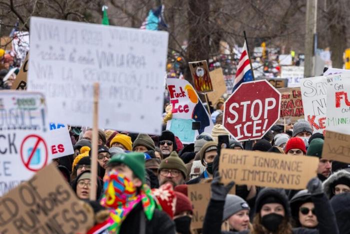 Согласно оценке департамента полиции Миннеаполиса, предоставленной изданию The Epoch Times, 10 января десятки тысяч человек вышли на улицы Миннеаполиса в знак протеста против убийства Рене Николь Гуд сотрудником Иммиграционной и таможенной службы (ICE).