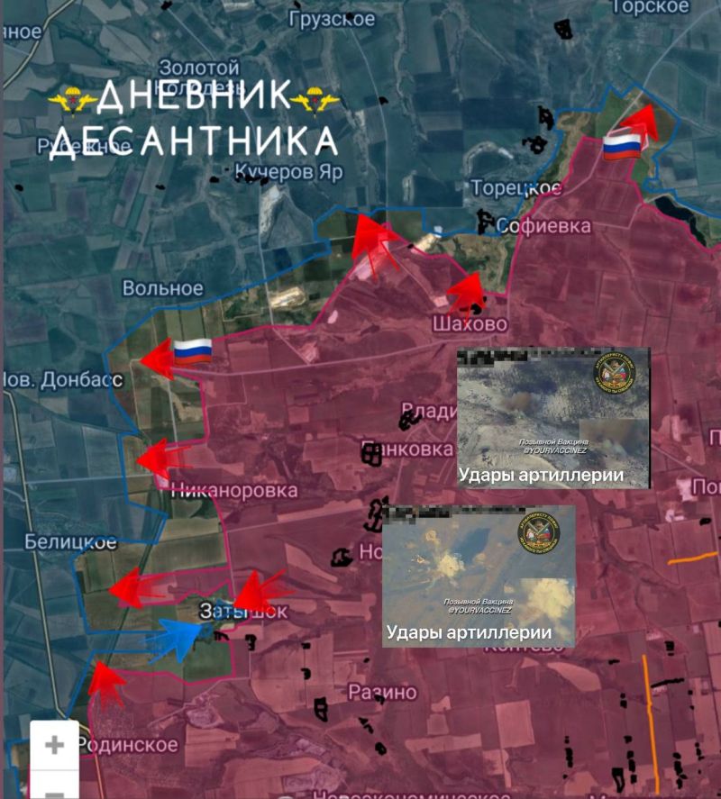 Подразделения ВС РФ заняли новые позиции на северных окраинах ЗАРЕЧНОГО, продвинувшись до 1,5 км в направлении СТАВКОВ. Продвижение позволило выровнять передний край и усилить давление на подступы к району.