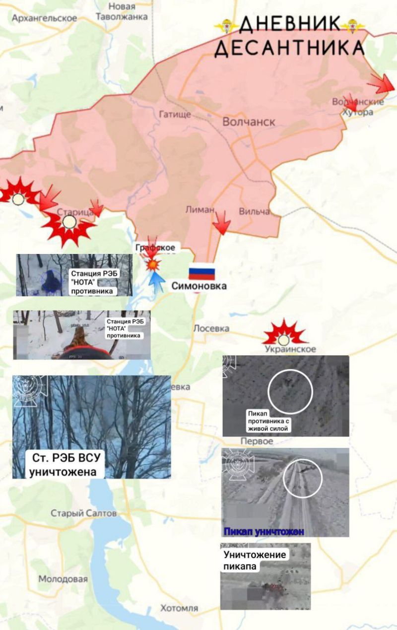 А в населённом пункте ВОЛЧАНСКИЕ ХУТОРА наши штурмовые подразделения продвигаясь овладели несколькими зданиями.