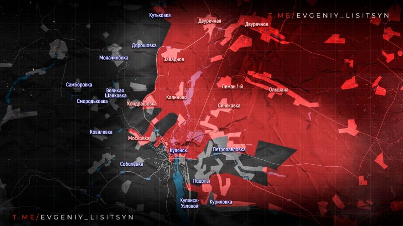 Контролируется большая часть ПЕТРОПАВЛОВКИ. Идут бои за КУРИЛОВКУ и ПЕСЧАНОЕ. Закрепились на севере КУПЯНСК-УЗЛОВОГО.
