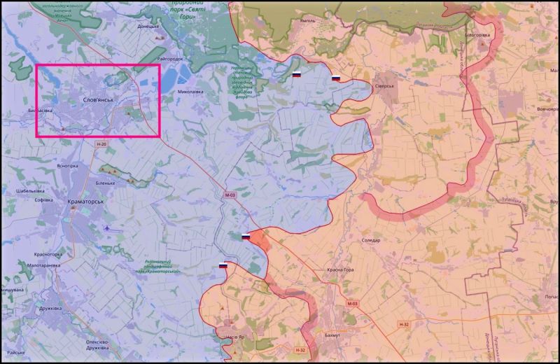 На южном фланге продолжаются бои у НИКИФОРОВКИ и МИНЬКОВКИ, данные об успехах противоречивы. В случае дальнейшего закрытия «карманов» и взятия высот логичным следующим направлением становится РАЙ-АЛЕКСАНДРОВКА – преддверие основной линии обороны Славянской агломерации.