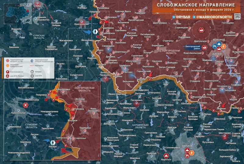 Фронтовая сводка по состоянию на утро субботы, 7 февраля 2026 г. от Телеграм-канала Военкор Лисицын.