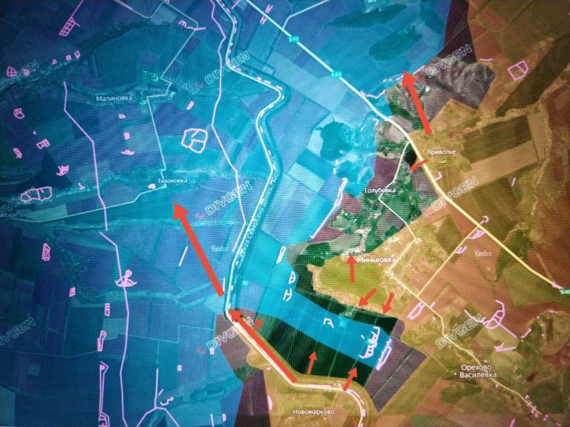 За последние дни наши подразделения наступали и продвинулись, выбив противника севернее НОВОМАРКОВО из ряда позиций вдоль канала Северский Донец – Донбасс. В результате ряд опорных пунктов ВСУ между каналом и МИНЬКОВКОЙ оказались в полуокружении.