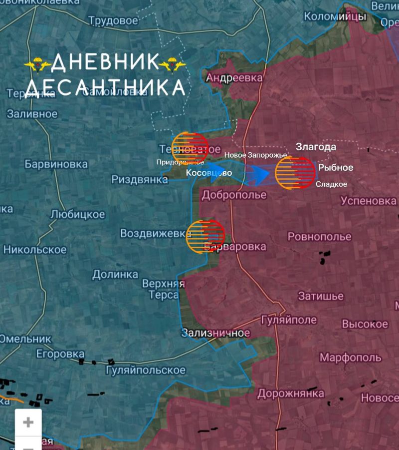 По ТЕРНОВАТОМУ, доподлинно пока неизвестно, что в селе, но соседнее ПРИДОРОЖНОЕ ушло в серую зону, по сути, мы там и не успели создать линию обороны, так что тут обычная боевая ситуация, – пишет Телеграм-канал Дневник Десантника.