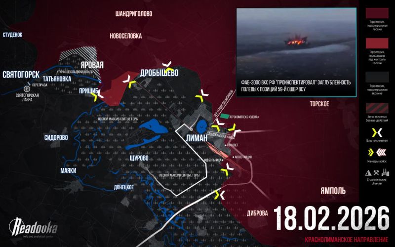 Фронтовая сводка по состоянию на утро четверга, 19 февраля 2026 г. от Телеграм-канала Военкор Лисицын.