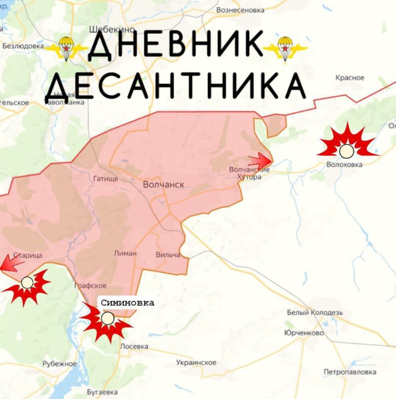 На ВОЛЧАНСКОМ НАПРАВЛЕНИИ ВС РФ продвигаются в районе СТАРИЦЫ, расширяют зону контроля в районе СИМОНОВКИ, занимают новые позиции в ВОЛЧАНСКИХ ХУТОРАХ. (Рис. 3.2)