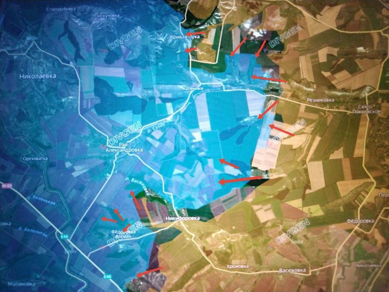 Западнее и северо-западнее НИКИФОРОВКИ ВС РФ продвинулись в посадках в районе балки ПУГАЧЁВ ЯР южнее РАЙ-АЛЕКСАНДРОВКИ.