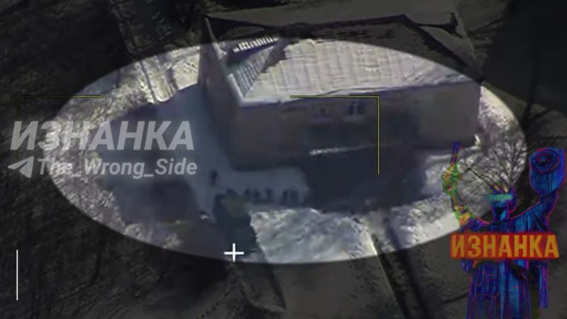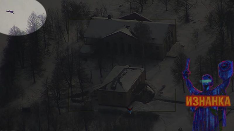 На кадрах видна предварительная разгрузка украинскими солдатами некоего оборудования из машины в здание, после чего по нему прилетает несколько «Гераней-2».