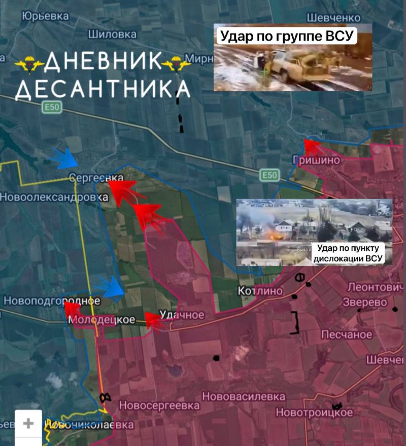 В районе УДАЧНОГО наши войска продвинулись к СЕРГЕЕВКЕ, ВСУ контратакуют со стороны КАЛИНОВКИ.