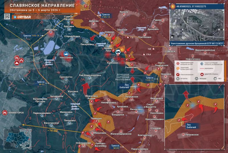 Ситуация в окрестностях КРАСНОГО ЛИМАНА на этой неделе охарактеризовалась успешным продвижением к северу от города. Освобождение ЯРОВОЙ и ДРОБЫШЕВО существенно расширяет зону контроля, в то время как зачистка н.п. СОСНОВОЕ открывает дорогу на СВЯТОГОРСК, – пишет Телеграм-канал Оперативный простор.