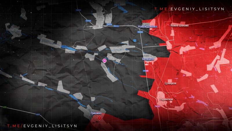 ВС РФ развивают успех в ГРИШИНО. Идут встречные бои у БЕЛИЦКОГО, НОВОГО ДОНБАССА и ВОЛЬНОГО. Бои на подступах к КУЧЕРОВ ЯРУ. Наши закрепились на высотах юго-восточнее НОВОПАВЛОВКИ.