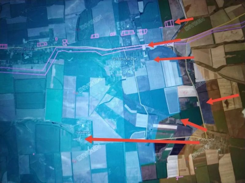 За последние два дня наши подразделения значительно продвинулись восточнее КОМСОМОЛЬСКОГО (Гуляйпольского), вышли к его окраинам, начав бои за него. При этом, несмотря на попытки ВСУ прорываться в направлении ГУЛЯЙПОЛЯ мелкими группами, в ходе встречных боёв ВС РФ ликвидировали «карман» между КОМСОМОЛЬСКИМ и МИРНЫМ, продвинулись южнее КОМСОМОЛЬСКОГО со стороны МИРНОГО и взяли село ЧАРИВНОЕ (идёт зачистка, противник контратакует).