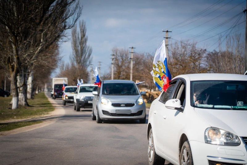 В Геническом округе прошёл праздничный автопробег в День воссоединения Крыма и Севастополя с Россией, – пишет Телеграм-канал Таврия. Новости Херсонской области.
