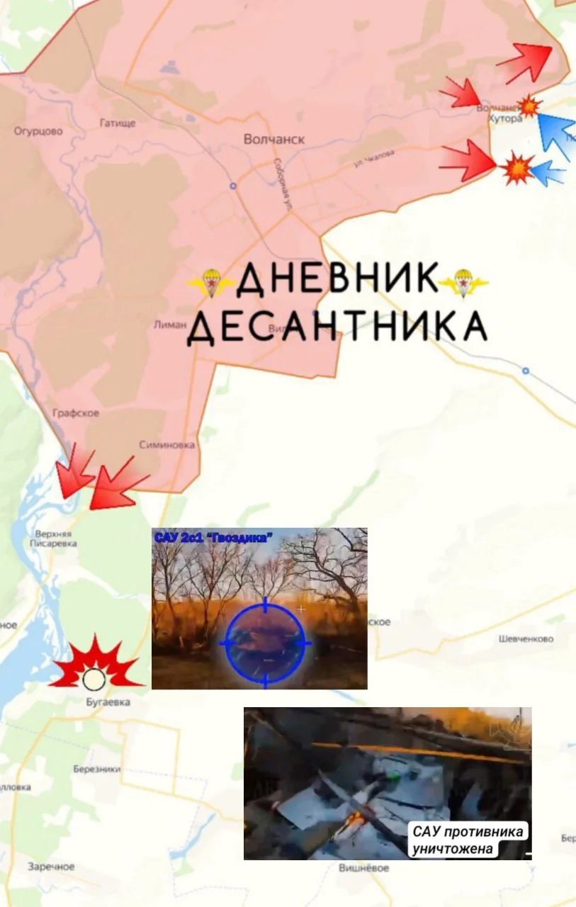 Идёт продвижение в районах ПРИВОЛЬЯ, ВАСЮКОВКИ и ФЁДОРОВКИ ВТОРОЙ в сторону РАЙ-АЛЕКСАНДРОВКИ – задача перерезать логистику ВСУ. Большая часть РЕЗНИКОВКИ, по их данным, уже за ВС РФ.