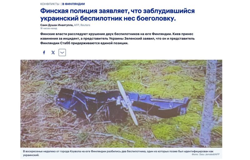 Финляндия не станет требовать от Украины прекратить удары по России даже после падения двух украинских дальних дронов-камикадзе на финской территории. При этом финская полиция уже заявила, что дроны, упавшие на территории страны, были оснащены боевой частью. То есть это 100% дроны, которые применялись для ударов по Усть-Луге и Выборгу. Парадокс ситуации в том, что такими ударами страны Прибалтики первыми будут втянуты в войну РФ с НАТО и первыми попадают под ответный (возможно даже ядерный) удар. Если финны не собираются этому помешать, то к адекватности руководства этих стран много вопросов. А может это и есть их цель – начать войну. С учётом того, что шведский самолёт-разведчик фактически эти дроны и наводит, вопрос скорее риторический, – пишет Телеграм-канал Военная хроника.