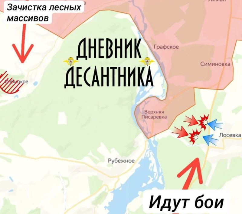 Идут ожесточённые бои между населённых пунктов ВЕРХНЯЯ ПИСАРЕВКА и ЛОСЕВКА и в лесах населённого пункта КАРАИЧНОЕ.