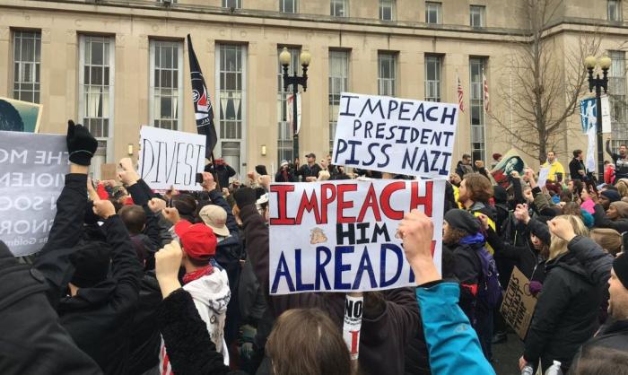 В день инаугурации протестующие ставили своей целью заблокировать проходы к Капитолию и устраивали беспорядки на улицах Вашингтона. Называлось это действо DisruptJ20. Были и разбитые витрины, и горящий мусор, и стычки с полицейскими. Правда, полицейские не особо церемонились с участниками протестов, применяя дубинки, слезоточивый газ, шумовые гранаты и успокаивая особо буйных с помощью водомётов.
