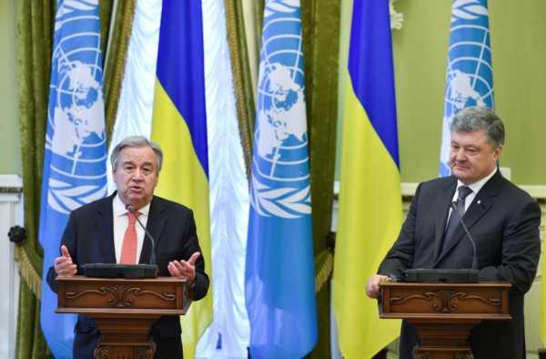 В воскресенье 9 июля в Киев с официальным визитом прибыл Генеральный секретарь ООН Антониу Гутерреш. Переговоры с главой украинского государства Петром Порошенко проходили на Банковой, в здании президентской администрации. После встречи состоялся совместный брифинг, где Порошенко призвал Организацию Объединённых Наций принимать более активное участие в решении актуальных вопросов Украины.