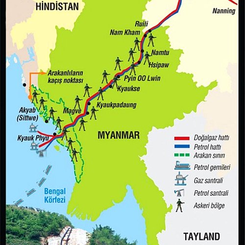 Напомним о геополитическом положении Мьянмы, граница которой с Китаем превышает 2000 километров. Введенный в эксплуатацию в 2015 году магистральный нефтепровод через территорию Мьянмы в Китай сделал путь для закупаемой Китаем ближневосточной и африканской нефти на 3000 километров меньше и на 7 дней короче. Параллельно нефтепроводу через территорию Мьянмы, соединяя её западные порты с южными провинциями КНР, тянется газопровод мощностью 12 миллиардов кубометров в год.