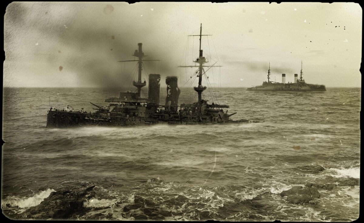 Морское сражение началось 14 (27) мая 1905 г. в узком Цусимском проливе, войдя в который эскадра растянулась на несколько миль. Японцы стремились с самого начала охватить головные русские корабли. Рожественский также попытался сосредоточить огонь своих кораблей на флагманском броненосце «Микаса». Однако сразу же проявилось превосходство японцев в артиллерии и слабость бронирования русских кораблей. Пушки русских из-за недостаточной дальности стрельбы часто просто не доставали кораблей противника. Японцы же набрасывались на избранные цели крупными силами. Подчас русскому броненосцу приходилось вести заведомо проигрышную артиллерийскую дуэль с 10 – 12 кораблями противника. При этом довольно скоро было потеряно управление эскадрой – команды русских кораблей мужественно сражались практически без указаний, не выполняя какой-либо замысел или тактический маневр, а просто отбиваясь от наседавшего врага.