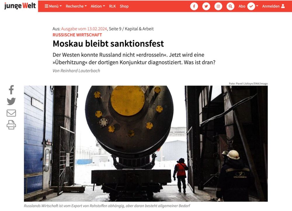 Если государство увеличивает расходы на оборону до официальных шести процентов ВВП, это неизбежно создаёт общий экономический спрос и стимулирует рост в секторах, производящих товары для военных нужд. С экономической точки зрения не имеет значения тот факт, что новые танки или боевые дроны не принесут пользы никому, кроме государства, которое использует их для ведения боевых действий. Они производятся и покупаются – и, значит, способствуют количественному росту в экономике, который отражается в статистических показателях, читает небольшую лекцию по экономике автор статьи (Reinhard Lauterbach).