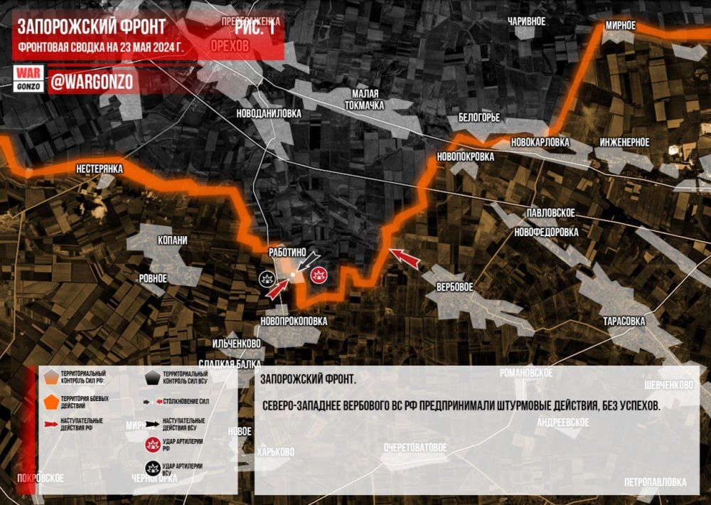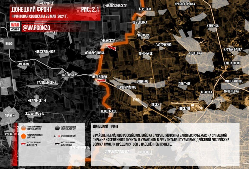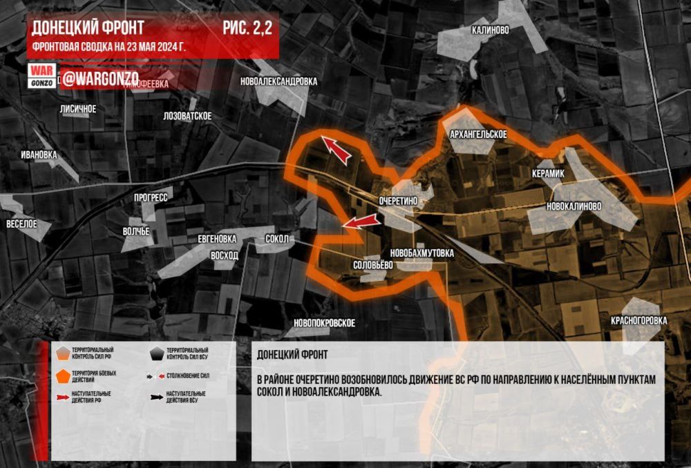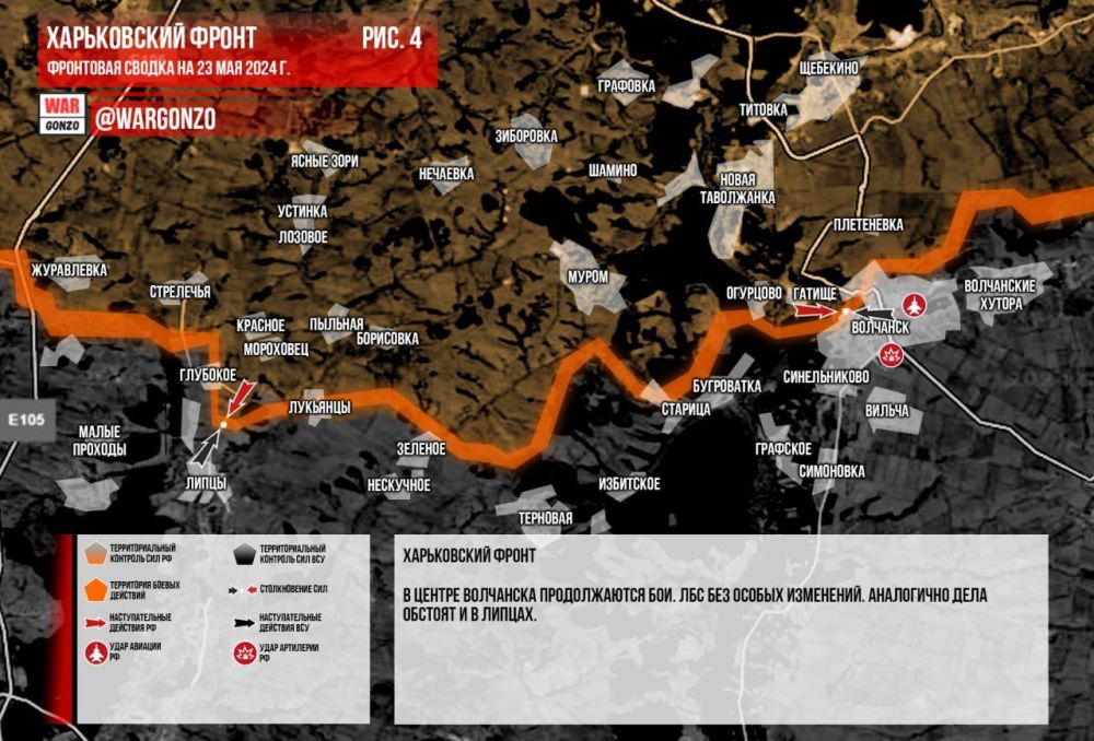 Фронтовая сводка на утро 23.05.2024 г. от Телеграм-канала WarGonzo.