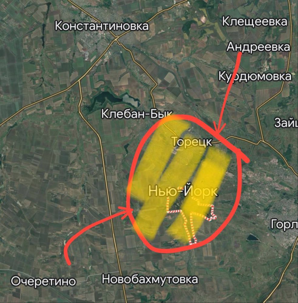Продвижение наших войск может способствовать расширению зоны контроля к югу от ЧАСОВА ЯРА, но и создать по-настоящему сложные условия для группировки ВСУ в районе Нью-Йорка.