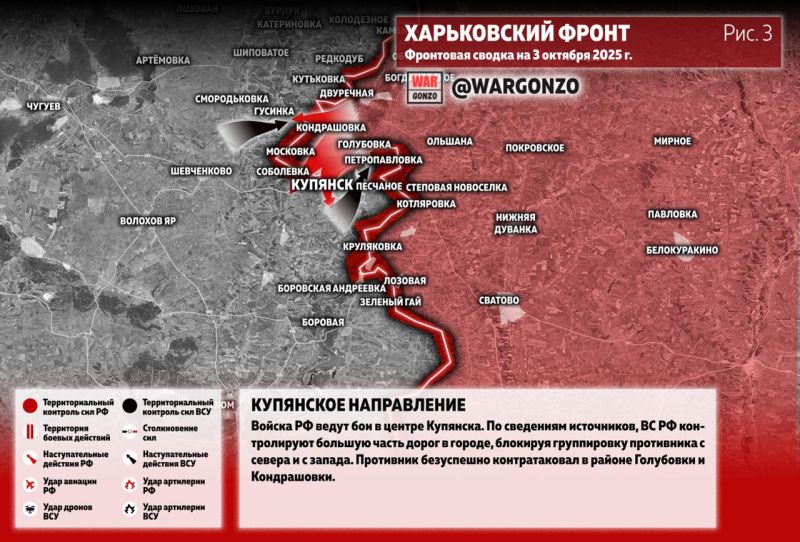 Фронтовая сводка на утро 03.10.2025 г. от Телеграм-канала WarGonzo.